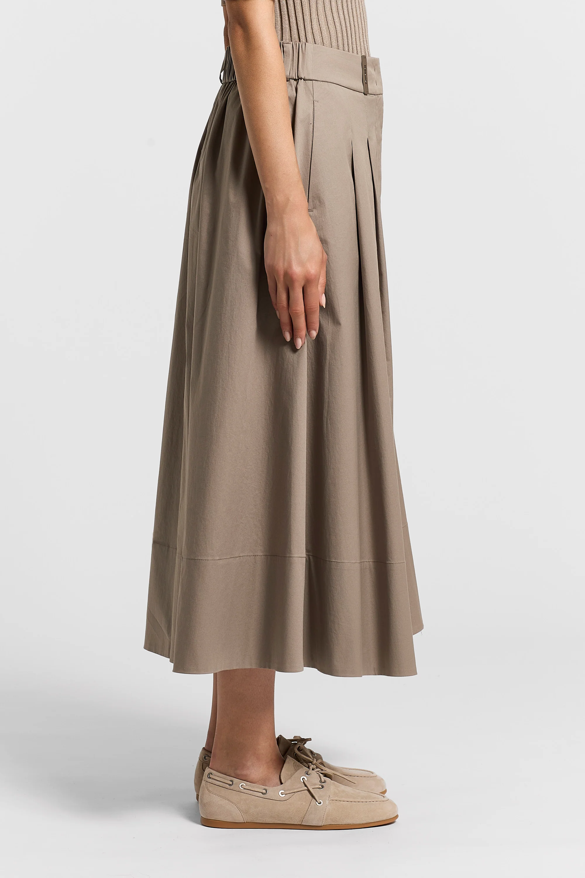 Designed for SS26, this lightweight stretch cotton sateen skirt with a distinctive sail hand presents new details designed to be worn when the season is getting underway, but temperatures remain variable.