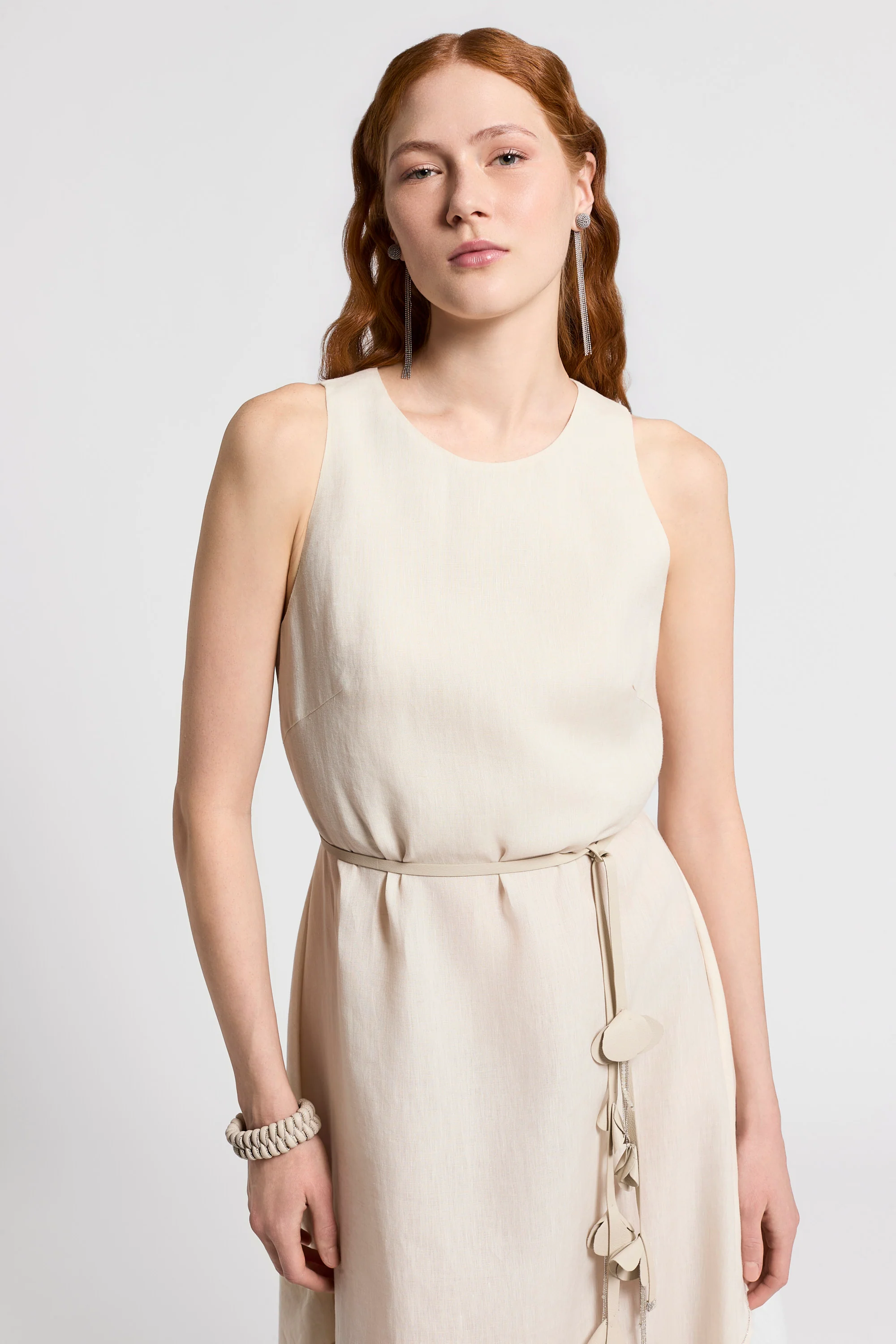 Minimalist and sophisticated, this long dress is crafted from lightweight pure linen canvas.