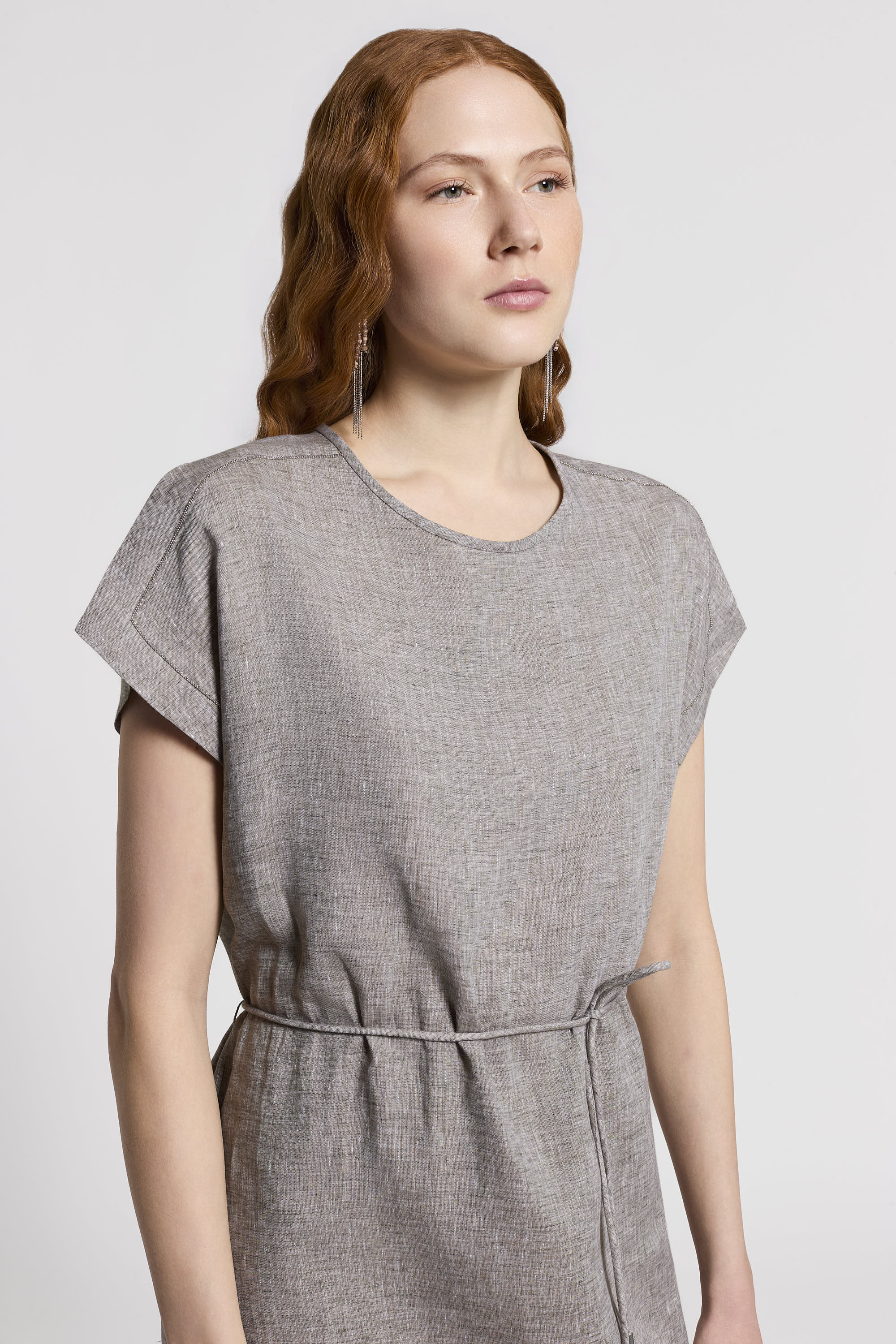 This dress is crafted from lightweight linen, a natural fiber that guarantees freshness, breathability and comfort, making it ideal for the warmer months.